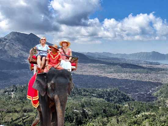 Elephant Ride and Kintamani Tour is a Bali Combination Tour Packages by offer Double exciting experience of Riding an Elephant and see the view of Mount Batur Volcano at Kintamani Village. Is amazing experience you will have during Bali Elephant Ride and Kintamani Tour which is get chance to get closed with biggest animals (elephants) and riding on the top and the tour will continue to Kintamani Village, exacly at Penelokan village to see the beautiful scenery of activie mount Batur volcano and also you will see the amazing beautiful Lake Batur from penelokan village. Places of interest or tour itinerary will be visit during the trip is Visiting Bali Elephant Parks for enjoy ride the Elephant for 30 minutes through the jungle, rice paddy and passed the Balinese local village, then you will enjoy having lunch at restaurant, after lunch we will continue the tour to visiting Kintamani Village, exactly visiting Penelokan Village at Kintamani District, from penelokan we will see the beautiful and amazing view of active volcano Mount Batur and Lake Batur, is great view, you can take picture of Kintamani volcano as much as you like and is free, Then tour will continue to visit Coffee Plantation where we can see variety of coffee, including coffee luwak process making, Then tour continue to visit Tegallalang rice terrace, located around 45 minutes from Kintamani village, in here you will rice paddy scenery with small valey, the rice terrace here is famous for tourist destination, mostly guest visit after do some trip to Kintamani Volcano.