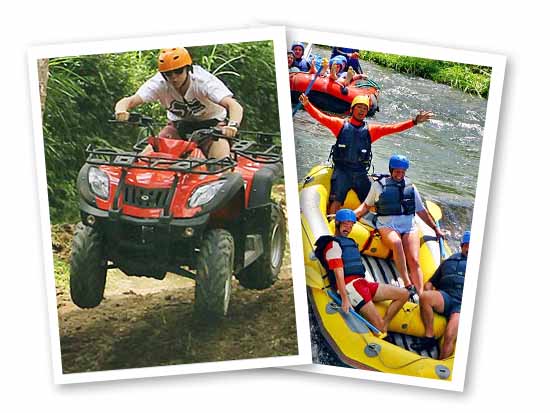 Rafting and ATV Ride Tour is an Bali Double Activities Tour Packages we created by allowed you to enjoy two activities in one day, first we will try the White Water Rafting Adventure at Ayung River with rapids challenge class 2 and 3 and for sure this is safe for beginner which never try the rafting before and then continue the tour to enjoy explore Bali Islands by using ATV bike with professional ATV guide. First you will have safety briefing before start the rafting and then the guide will lead your adventure for 2 hours in Ayung river, after finish the rafting you will enjoy the delicious lunch buffet with Indonesian food and then after finish the lunch you will escorted to the ATV provider where you will try to beat the beaten track for 1 hours and then after finish ATV Ride tour, we will bring you back to your hotel with full of amazing memory during this double activities of Bali Rafting and ATV Ride Tour packages.
