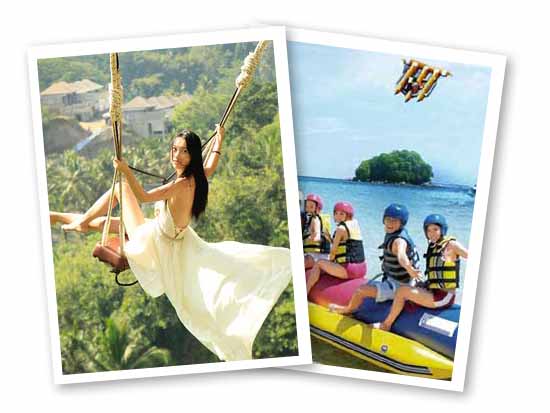 Water Sports and Swing Tour is Bali Double Activities Tour packages for enjoy the fun of water sports activity at tanjung benoa beach with selection of water sports activity in this package and then continue do jungle swing at Bali swing company, is perfect choice for those want to do water sports and jungle swing in one day with affordable price and good service. the first adventure begins by doing water sports activities on Tanjung Benoa beach with the activity options contained in this package, such as banana boat, flying fish, glass bottom boat and turtle islands tour, combining a suitable water sports package to enjoy the thrill of water play on the island Bali, after we finish water sports, we will head to Bali Swing, arriving in Bali swing we will having buffet lunch, after lunch we will do a jungle swing with such beautiful scenery, and also you can take photos at bird nest with the background natural scenery, and take photos on some spots on Bali Swing.